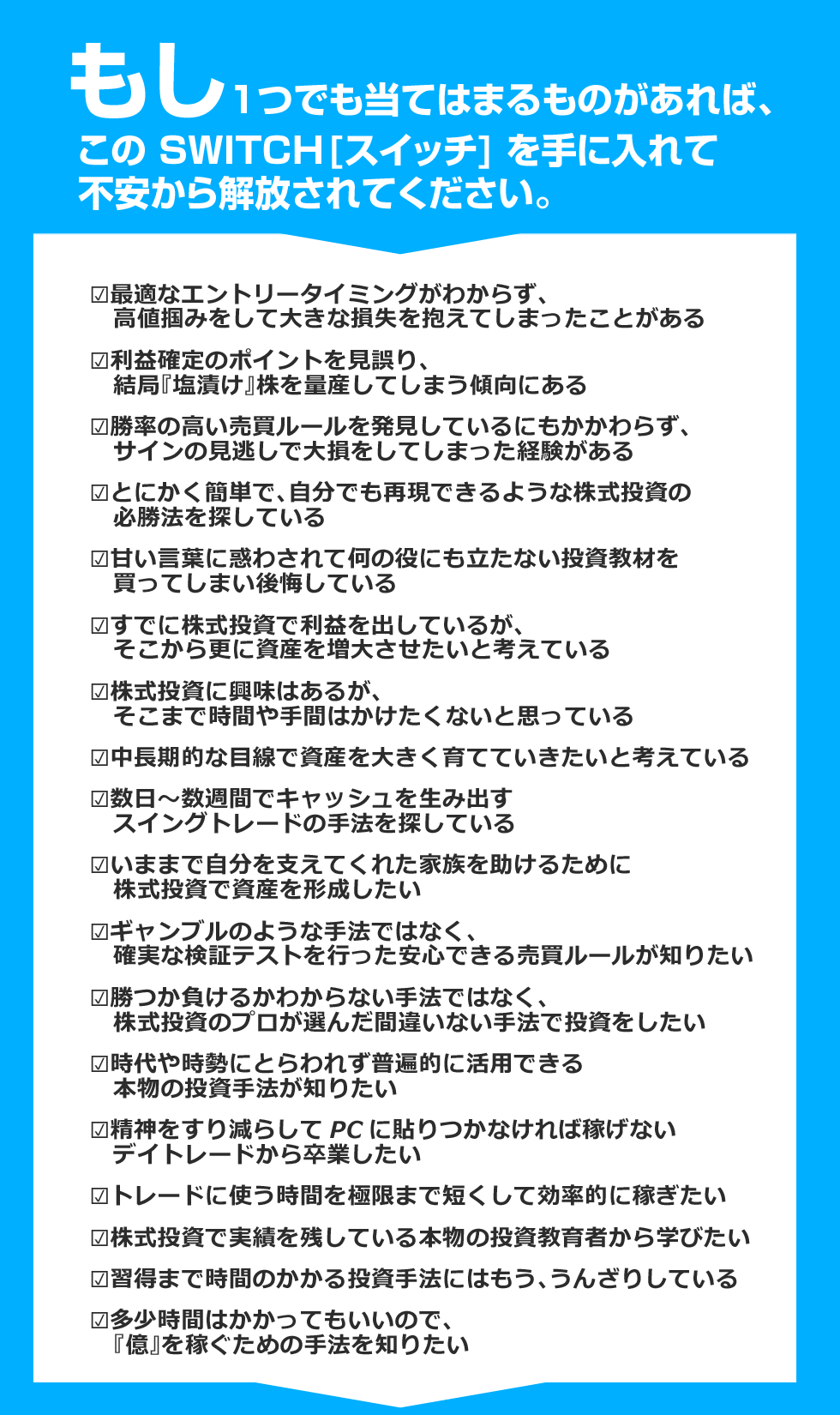 また、スイッチトレードの事務局でもサポートを行っておりますが、